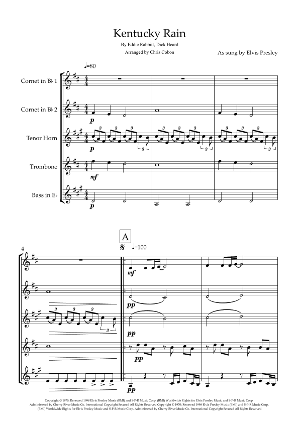 As sung by Elvis Presley. Format: Cornets 1 and 2, Tenor Horn, Bb Trombone and Eb Bass - All in treble clef.Self-print Pdf score and parts |